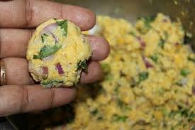 2. இறுதியாக, பொடியாக நறுக்கிய வெங்காயம், கறிவேப்பிலை, மற்றும் கொத்தமல்லி இலைகளைச் சேர்த்து, அனைத்து மாவையும் ஒன்றாகப் பிசையவும்.