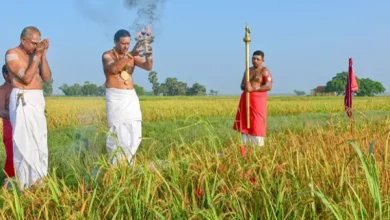 இன்று யாழ்ப்பாணம் நல்லூர் கந்தனுக்கு நெற்புதிர் அறுவடை!