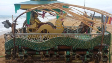 யாழ்ப்பாணம் – வடமராட்சி பகுதியில் கரையொதுங்கிய புத்த பெருமான் அமர்ந்திருக்கும் மிதப்பு ரதம்! காண குவிந்த மக்கள்