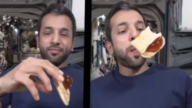 விண்வெளி வீரர் தேன் கலந்த உணவினை விண்வெளியில் உண்ட காட்சி இதோ!