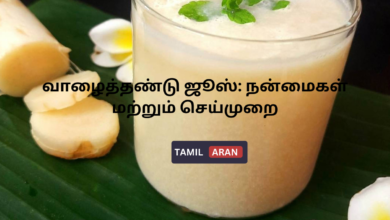 பொருளடக்கம் வாழைத்தண்டு ஜூஸ்: நன்மைகள் மற்றும் செய்முறைவாழைத்தண்டில் உள்ள ஊட்டச்சத்துக்கள்:வாழைத்தண்டு ஜூஸ் குடிப்பதால் ஏற்படும் நன்மைகள்:வாழைத்தண்டு ஜூஸ் தயாரிப்பு முறை:பயனுள்ள குறிப்புகள்:பிற குறிப்புகள்:எச்சரிக்கை: வாழைத்தண்டு ஜூஸ்: நன்மைகள்…